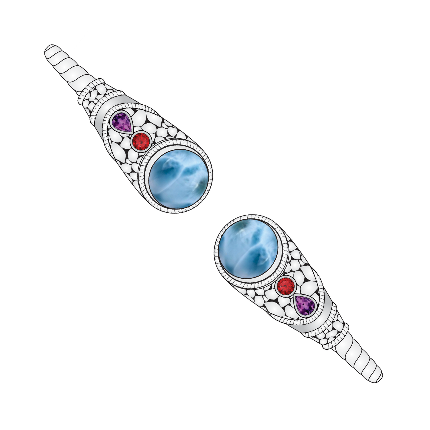 Artisan Balinese Sterling Silver Dragon Ring with Garnet