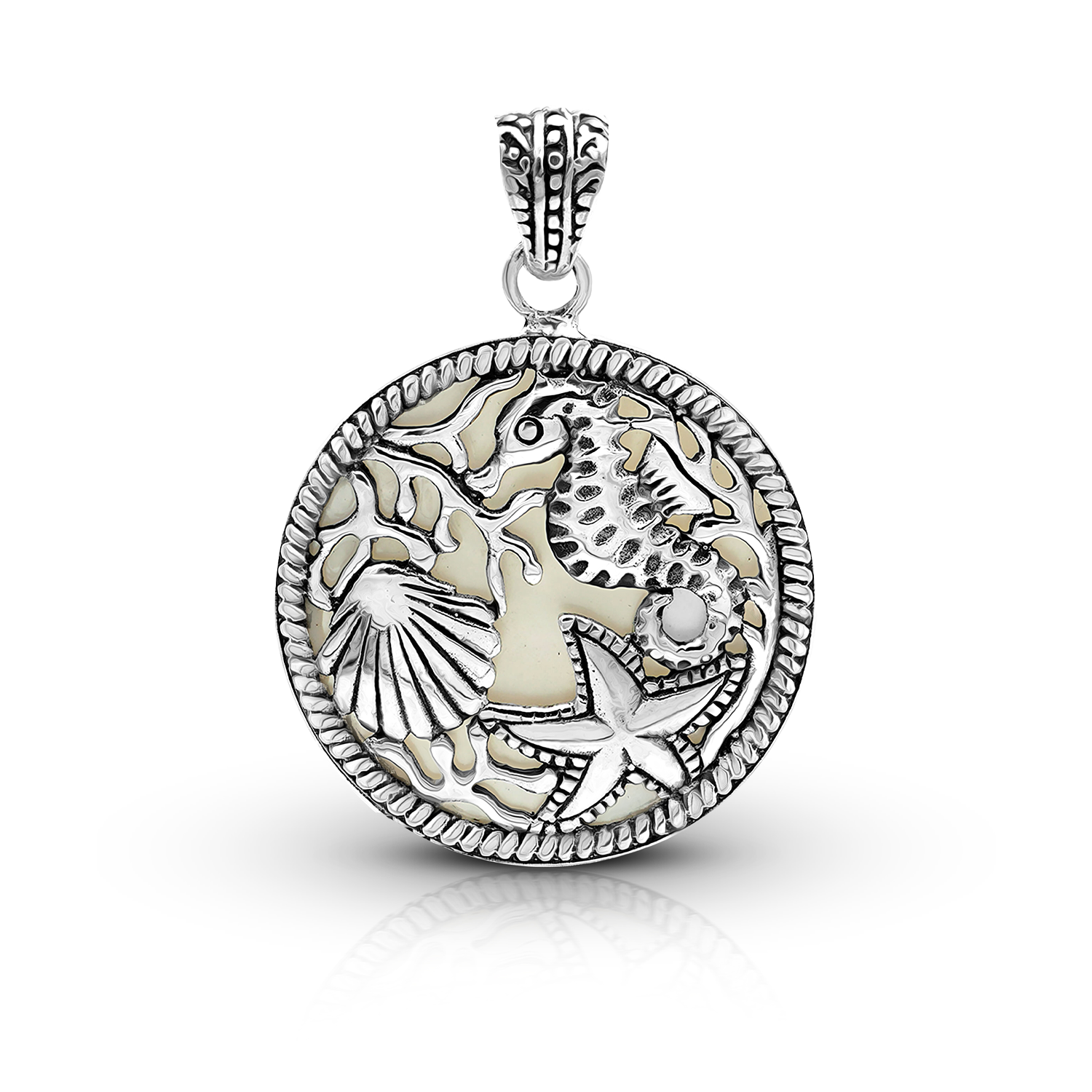 Bali Artisan Sterling Silver Sea Life Pendant with Mother of Pearl