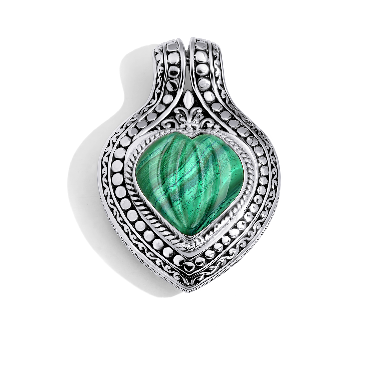 Romantic Bali Sterling Silver Malachite Heart Pendant