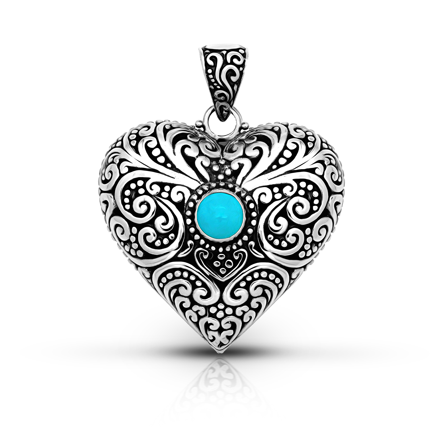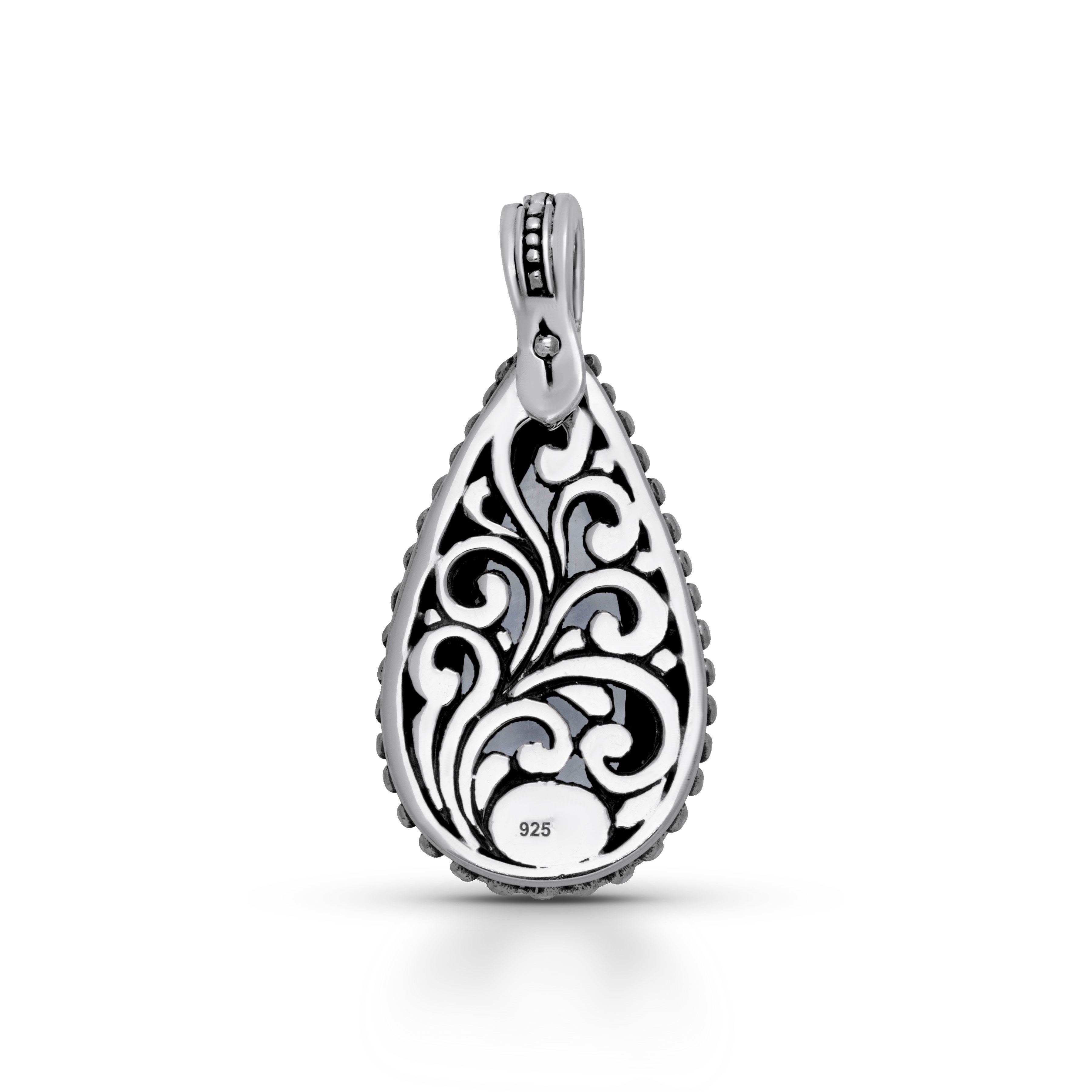 Sterling Silver & Carved Turquoise Balinese Pendant