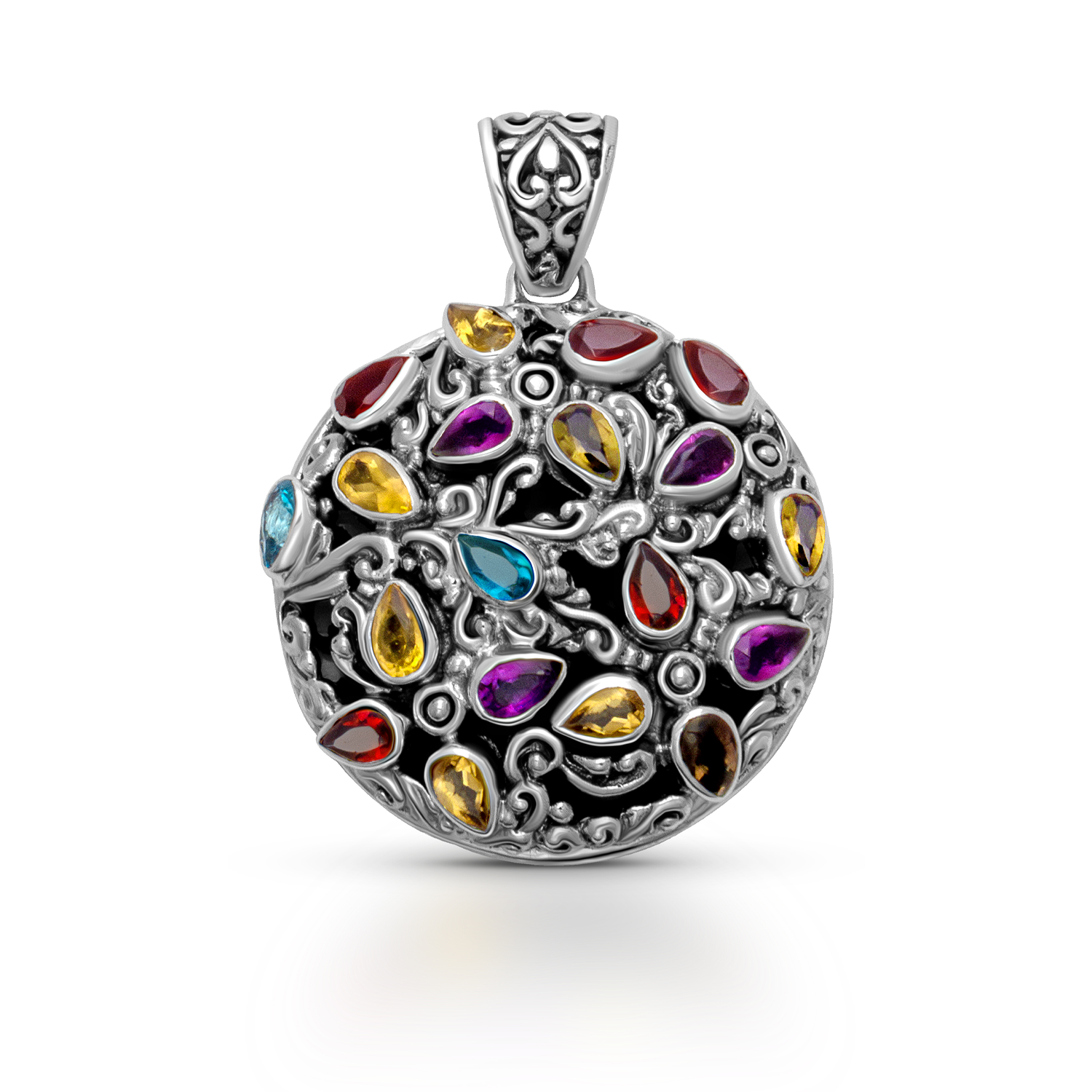 Radiance of Bali: Multi-Stone Sterling Silver Pendant