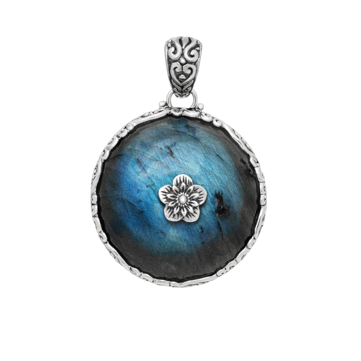 Balinese Artisanal Sterling Silver Labradorite Flower Pendant